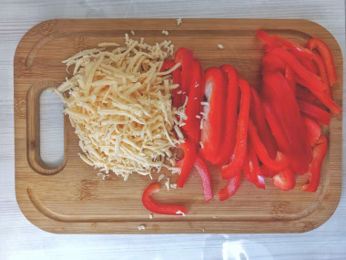 В середину выложите по 5-6 полосок болгарского перца.