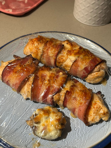 Запекала без фольги, так как в мою духовку ее нельзя. Внесла некоторые коррективы , немного по-другому выложила начинку и обвернула в бекон. Куриные рулеты - Вкуснятина! Спасибо за рецепт