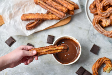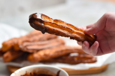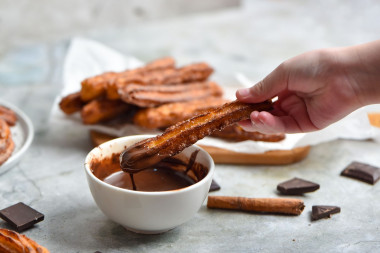 Готовые чуррос также можно полить растопленным горьким шоколадом, смазать джемом или вареньем.