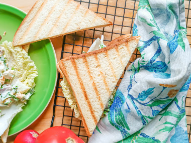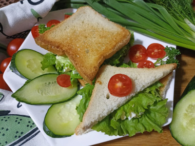 Приготовила бутерброды для пикника сэндвич. Вареные яйца нарезала, добавила майонез, зелень, перец- получилась начинка. Тостовый хлеб обжарила на сухой сковороде с обеих сторон. На обжаренные ломтики хлеба выложила промытые и просушенные листья салата, начинку , опять лист салата - и сверху второй ломтик хлеба. Бутерброд готов! Не на пикник ( к сожалению))), а на завтрак. Очень просто и вкусно. До пикника сэндвич вряд ли сохранил такую хрустящую аппетитную корочку, как сразу после приготовления, а с пылу с жару- самое то!!! Спасибо автору за рецепт!
