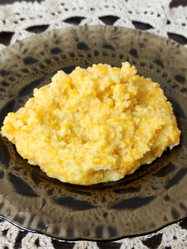 Каша получилась отменная: яркая и теплая как летнее солнышко, прям радует глаз, её так и хочется попробовать и согреться воспоминаниями о приятных летних моментах.