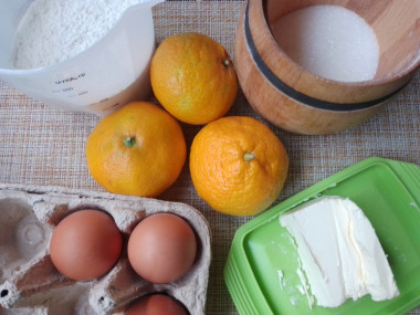 Для приготовления мандаринового кекса подготовить необходимые продукты. Все ингредиенты должны быть комнатной температуры.