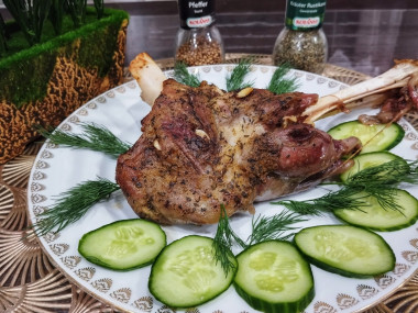 На следующий день немного подержала ножку при комнатной температуре. Затем завернула в фольгу в несколько слоев и убрала в духовой шкаф запекаться при 200° 2 часа. Далее открыла фольгу и ещё минут 15.