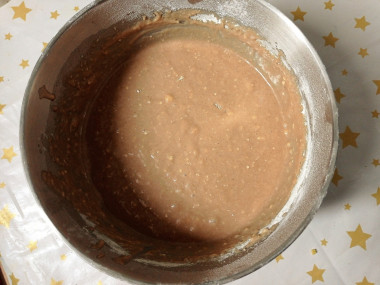 Затем добавляем муку и перемешиваем до однородной консистенции.