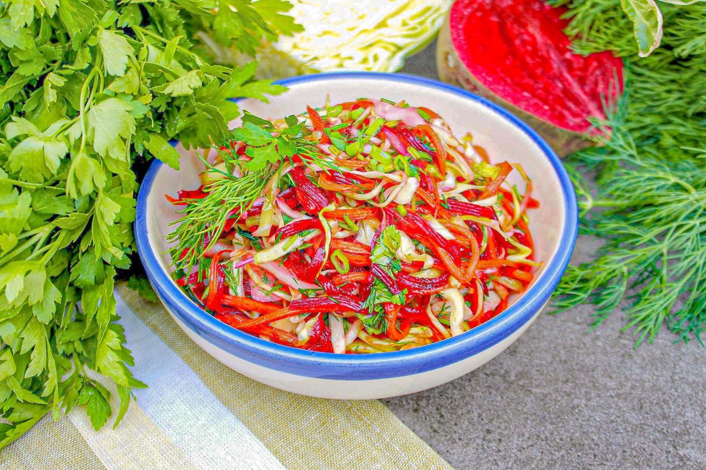 Салат "Щетка" (или "Метелка") пришел к нам из диетологии. Его рекомендуют в некоторых случаях включать в рацион для очищения кишечника и похудения. В основе рецепта — сырые овощи, богатые грубой клетчаткой. В разных вариациях добавляют яблоко, лимонный сок, оливковое масло, но классика — это именно капуста, морковь и свекла.
