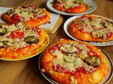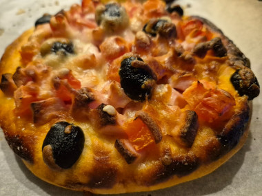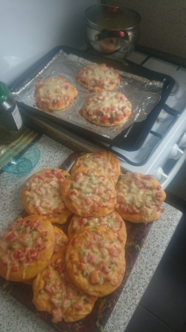 Тесто и правда очень воздушное! Мини-пиццы очень вкусные получились. Единственное, я вместо воды в тесто добавила молоко. Муки вышло не много меньше 390г,смотрела по тесту. И масло добавляла не к дрожжам, а замешивала в само тесто. Из полученного количества теста, получилось 12 мини-пицц. Начинку делала по рецепту, фантазировать не стала. Единственное нарезала кубиком (но так любит сынок :)) По этому рецепту буду делать ещё!