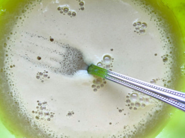 Возьмите удобную просторную миску, в которой будете замешивать тесто. Налейте в неё теплую воду и добавьте сухие дрожжи. О том, как правильно использовать дрожжи и их заменять, читайте по ссылке под шагами. Температуру воды проверьте рукой. Если она для вас комфортна, то можно добавлять дрожжи. Если она будет слишком горячая, то дрожжи в ней погибнуть, и тесто не получится.