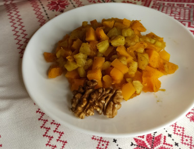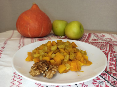 Когда хочется вкусненького, а дома только тыква и пару яблок, тогда приготовьте это блюдо! Получается очень нежно и ароматно. А если добавить в белый йогурт и посыпать орешками, то получится еще вкуснее.