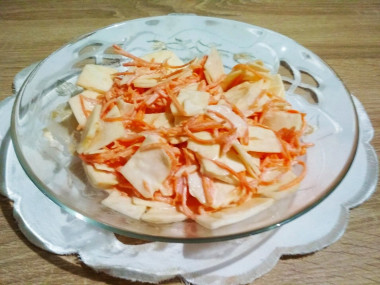 Морковный салат с сельдереем - очень удачное блюдо в зимнюю пору, когда количество овощных блюд на наших столах заметно сократилось. Продукты, входящие в его состав, доступны. Готовить салат не сложно. Я немного уменьшила количество сметаны и лимонного сока (исходила из того, что было в холодильнике). По вкусу салат получился интересным и необычным. Сельдерей в нём хоть и преобладает по количеству, но не имеет своего привычного пикантного вкуса, весь акцент смещён на маринад - выраженное сочетание кислого, сладкого и соленого. Я б ещё добавила зубчик чеснока))) но в этот раз решила готовить по рецепту. Сметана в этом салате, на мой взгляд, самая подходящая заправка (если готовить этот салат с майонезом, то я б отказалась от лимонного сока, а с растительным маслом, как по мне, то было бы слишком пресно). Мне понравилось такое сочетание ингредиентов, морковный салат с сельдереем здорово разнообразил наш стол! Спасибо за рецепт!
