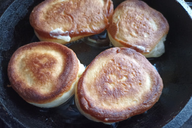 Оладьи должны подрумяниться с двух сторон. Если сделать большой огонь, то оладьи не успеют пропечься внутри, а снаружи начнут подгорать. Поэтому контролируйте уровень огня.