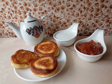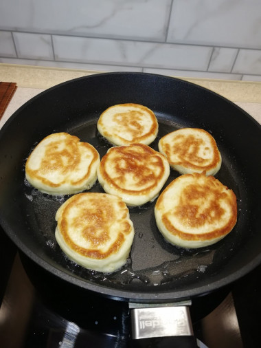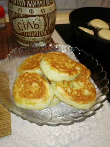 А я всегда на кефире оладьи замешиваю. Всегда пышными получаются.