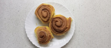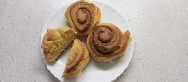 Вместо ванильного сахара добавила щепотку ванилина. Сливочное масло для теста заменила на такое же количество маргарина. Для начинки взяла, конечно, сливочное масло. Муки у меня ушло около 560 граммов. Тесто еще оставалось немного липким, но чтобы не забивать его мукой, просто при замесе смазала слегка руки растительным маслом. За час подъёма тесто увеличилось примерно в три раза и было уже практически не липким.