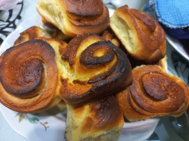 Готовые сладкие вкусные дрожжевые красивые булочки на сыворотке сразу же подайте к столу. Приятного аппетита!