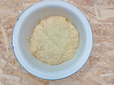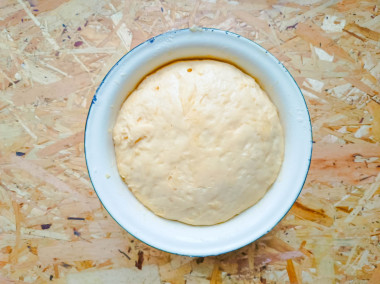 Готовое тесто скатайте в шар, выложите в миску, накройте полотенцем и оставьте в тепле на 1 час для подъема.