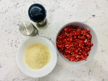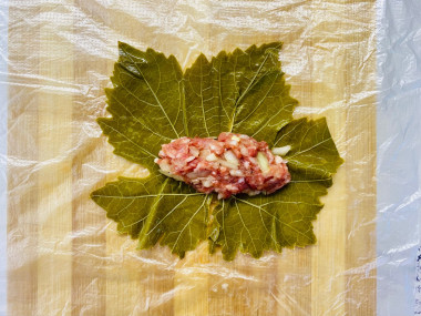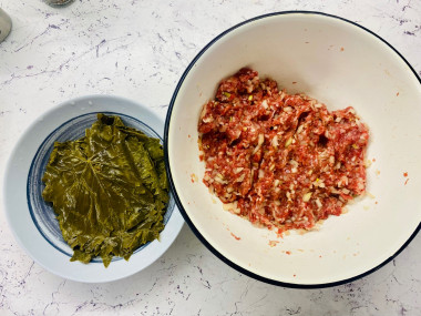 Как сделать долму из свежих виноградных листьев? Подготовьте все необходимые ингредиенты. Фарш можно использовать как покупной, так и сделанный самостоятельно. Сделайте из мяса фарш.