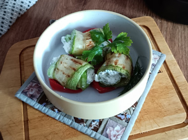 Сделала фаршированные рулетики из кабачков с сыром и чесноком. Очень вкусная закуска, достойная оказаться на праздничном столе! Я же приготовила рулетики просто на ужин.