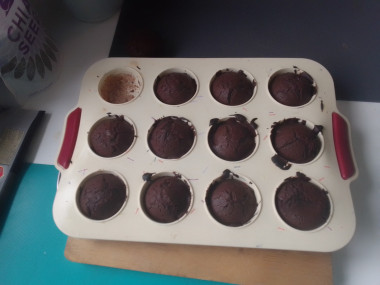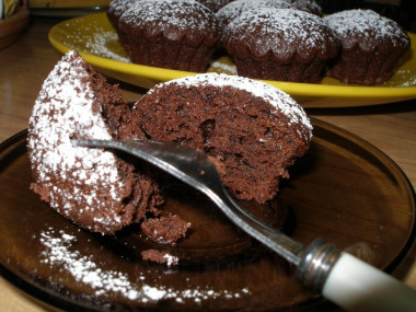 Но очень маленькая порция: получилось 9 маффинов (формочки d6,5 см.). Обалденно шоколадный вкус!!! Всем, кто будет готовить - ЗАМЕШИВАЙТЕ СРАЗУ ДВОЙНУЮ ПОРЦИЮ! Съедается моментально, с огромным удовольствием.