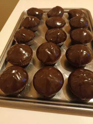 Окуните каждый кекс сверху в глазурь, оставьте на 15-20 минут, чтобы глазурь немного подсохла.