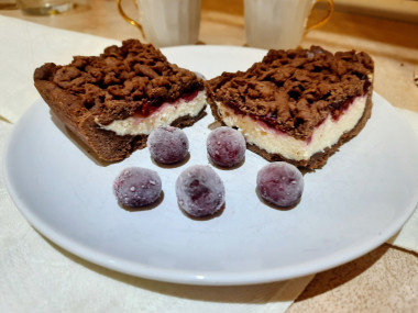 Шоколадный пирог с творогом и вишней я готовила давно, ещё используя замороженную вишню. Фото сделала, а выложить фотоотчетик всё никак не получалось