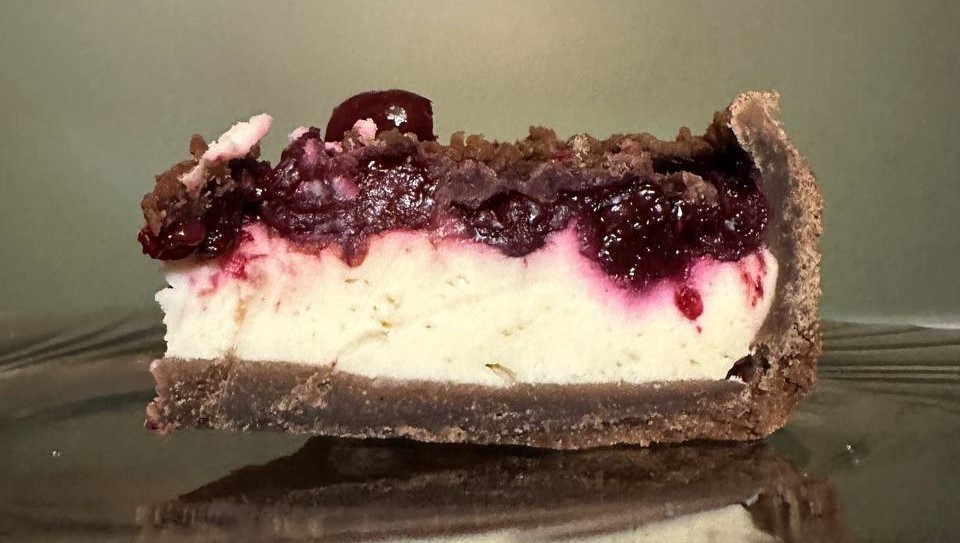 На творог выложите вишню. Если бортики получились высокие, то подрежьте их.