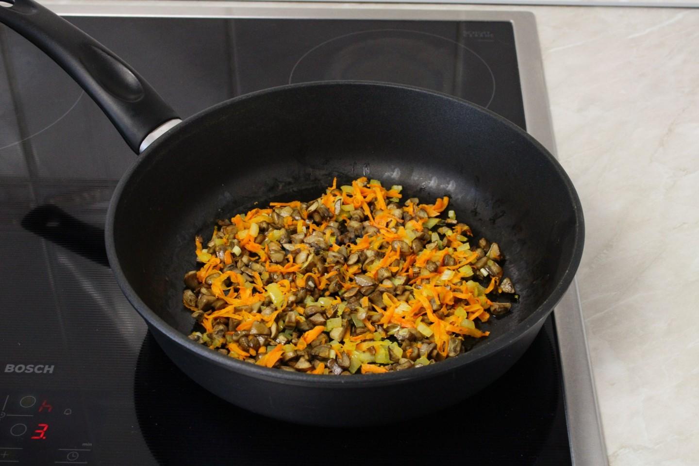 Шаг 4. Как обжарить грибы с овощами?
