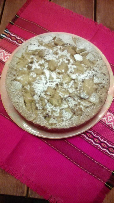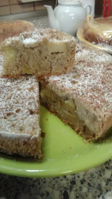 замечательный рецепт да еще и в мультиварке. ничего не пригорит и прекрасно все запечется.яблоки любые я больше люблю сладкие и мягкие. если нет в доме манки можно обойтись только мукой. если не купили крахмал сделайте его дома,натрите сырой картофель, залейте водой, дайте осесть крахмалу на дно слейте воду соберите и высушите крахмал. также можно и сахарную пудру изготовить дома измельчите на кофемолке сахар и все. если нет кофемолке можно взять бутылку или скалку и раскатать сахар на бумажке до пудры правда это долго. а рецепт замечательный. всем приятного аппетита.