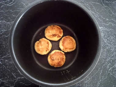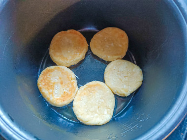 Затем откройте мультиварку и переверните сырники. Готовьте их так же и с другой стороны 8-10 минут. Ориентируйтесь по мощности своей мультиварки. Конечно, в мультиварке, сырники готовятся дольше, чем на сковороде, но на вкус они получаются более нежные и мягкие.