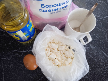 Для творожного теста соедините мягкий творог с сахаром и яйцом. Все ингредиенты перемешайте.
