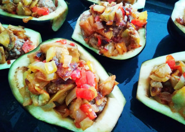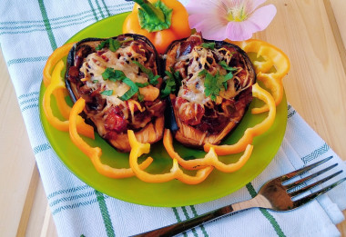 Лето - самое время фаршировать всевозможные овощи. Лодочки из баклажанов являются отличным вариантом для ужина. Времени у меня это заняло не много, зато результат превосходный. Вместо фарша я использовала замороженные фрикадельки, которые приготовила для супа. Придется суп сварить из чего-то другого) Положила по две фрикадельки в каждую лодочку, а сверху обжаренные овощи. Сначала запекла до готовности лодочки из баклажанов, а в конце посыпала тертым сыром и запекла до расплавления последнего. Вкус у этих лодочек просто великолепный, мясо наполняет сытостью, а овощи вкусны в любом виде. Рекомендую этот рецепт к приготовлению!