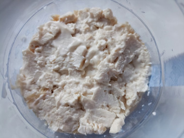 Отвариваем куриную грудку до готовности и нарезаем небольшими кусочками.