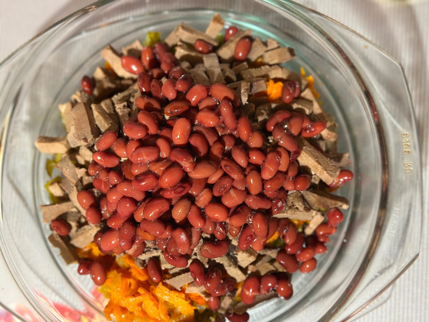 Спасибо, что поделились советами по приготовлению салата с говяжьей печенью. Несомненно, это пригодится многим хозяйкам. Замена консервированного горошка на фасоль - прекрасная замена. Замечательно, что вкус блюда вышел сбалансированным и салат добавил уюта за вашим столом!