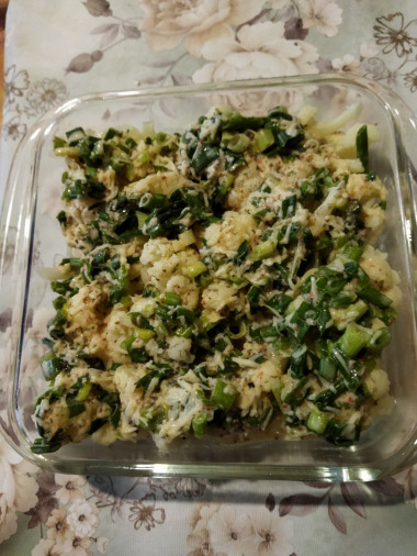 Запеканка из цветной капусты в духовке с сыром очень понравилась, в заливку добавила немного майонеза, запекала 40 минут. Из специй еще добавила хмели-сунели.