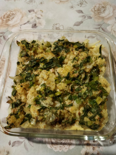 Давно уже для себя отметила такой простой и лёгкий рецепт и решила приготовить запеканку из цветной капусты. Готовить просто, единственный нюанс в том, что изначально ее нужно проваривать до готовности, потому как в духовке она лишь покроется румяной корочкой. В качестве зелени добавляла зелёный лук и сушёный укроп. Получилось вкусно. Капуста нежная на вкус и ароматная. Спасибо за рецепт!