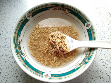 Утром промойте перловку несколько раз в холодной воде. Затем откиньте крупу на дуршлаг, чтобы с неё стекла лишняя вода.
