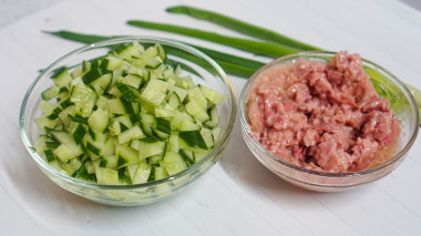 Огурец вымойте, обсушите и нарежьте мелкими кубиками. Огурцы выбирайте не вялые, сочные.