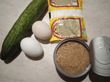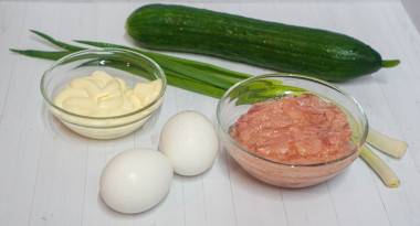 Как сделать салат с тунцом, огурцом, яйцом? Подготовьте все необходимы ингредиенты. Яйца для салата берите крупные.