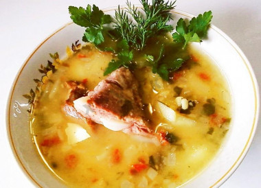 Для наглядности делюсь рецептом горохового супа с копчеными ребрышками.