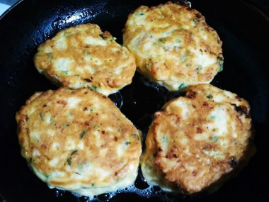 К этому рецепту котлет из красной рыбы я давно присматривалась. Исключила из состава только сливочное масло. Готовила по рецепту, муку добавляла на глаз, чтобы получилась густая масса. Выкладывала её на сковороду ложкой. Была приятно удивлена результатом. У меня получились пышные оладьи с кусочками красной рыбки, воздушные, в то же время сочные и сытные. Очень понравились мне на вкус эти котлеты-оладьи! При подаче я слегка присыпала их тертым сыром, но на самом деле сыра в этом случае жалеть не стоит, он отлично дополняет блюдо. Спасибо за рецепт!