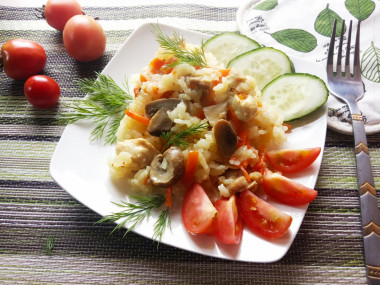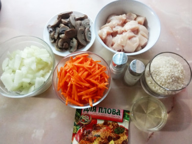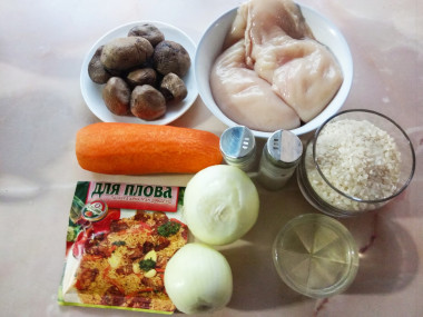 Плов с грибами в мультиварке (с индейкой)