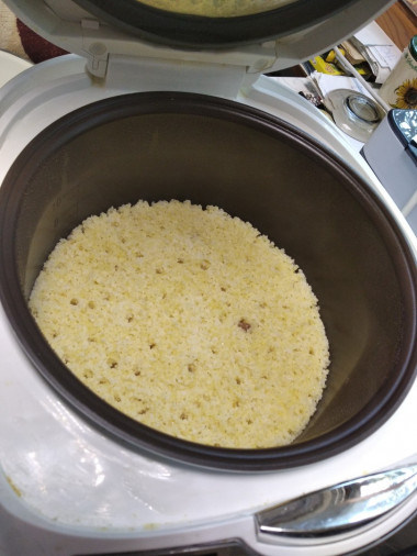 Установите чашу в мультиварку. Выставите режим, подходящий для варки крупы. На моей модели это режим "Гречка", на других есть специальный под названием "Крупа". Если у вас устанавливается время варки, выберите 30 минут. Мой режим автоматический. Когда мультиварка закончит работу и прозвучит сигнал, откройте крышку и положите остатки масла в горячую кашу. Если у вас есть время, то можете оставить ее потомиться под закрытой крышкой еще полчаса.