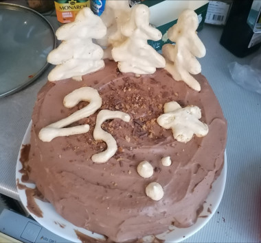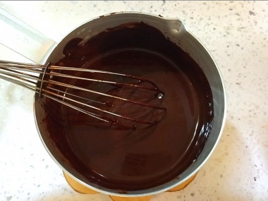 Для покрытия торта сделала ганаш шоколадный густой по этому рецепту. Количество порций сократила до двух. Этого хватило, чтобы покрыть толстым слоем торт диаметром 26 см. + подтеки.