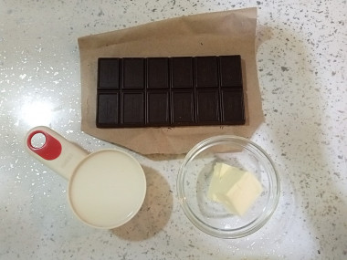 Как сделать шоколадный ганаш для торта? Подготовьте все необходимые ингредиенты для приготовления.