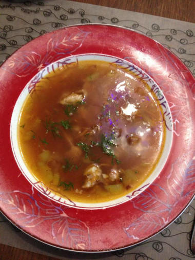Очень вкусный, насыщенный супчик получился! Немного островат, поэтому если часто готовить, то можно и без приправ.