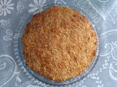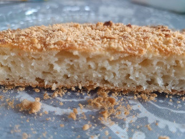 Я не стала печь кексы, а решила испечь запеканкой в круглой форме диаметром 26 см. Подумала, что должна получиться интересная текстура, если измельчить обычное печенье в крошку и сделать основу, а небольшим количеством присыпать сверху.