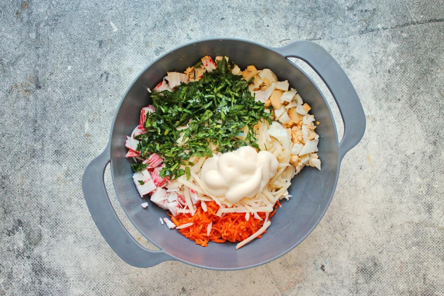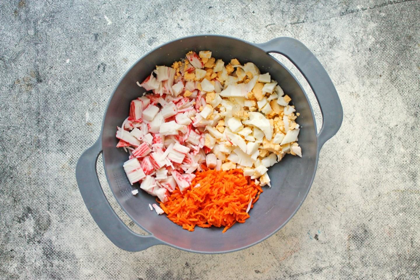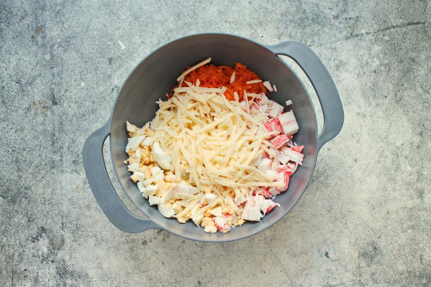 Шаг 1. Как сделать салат Валерия с корейской морковкой и крабовыми палочками?