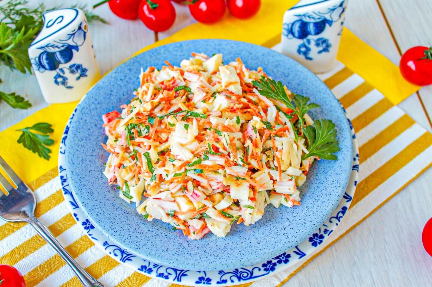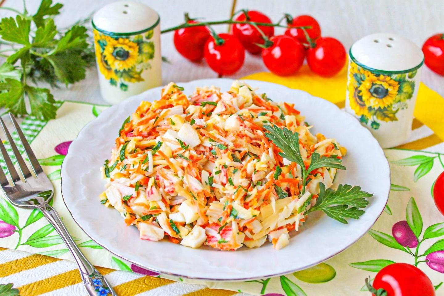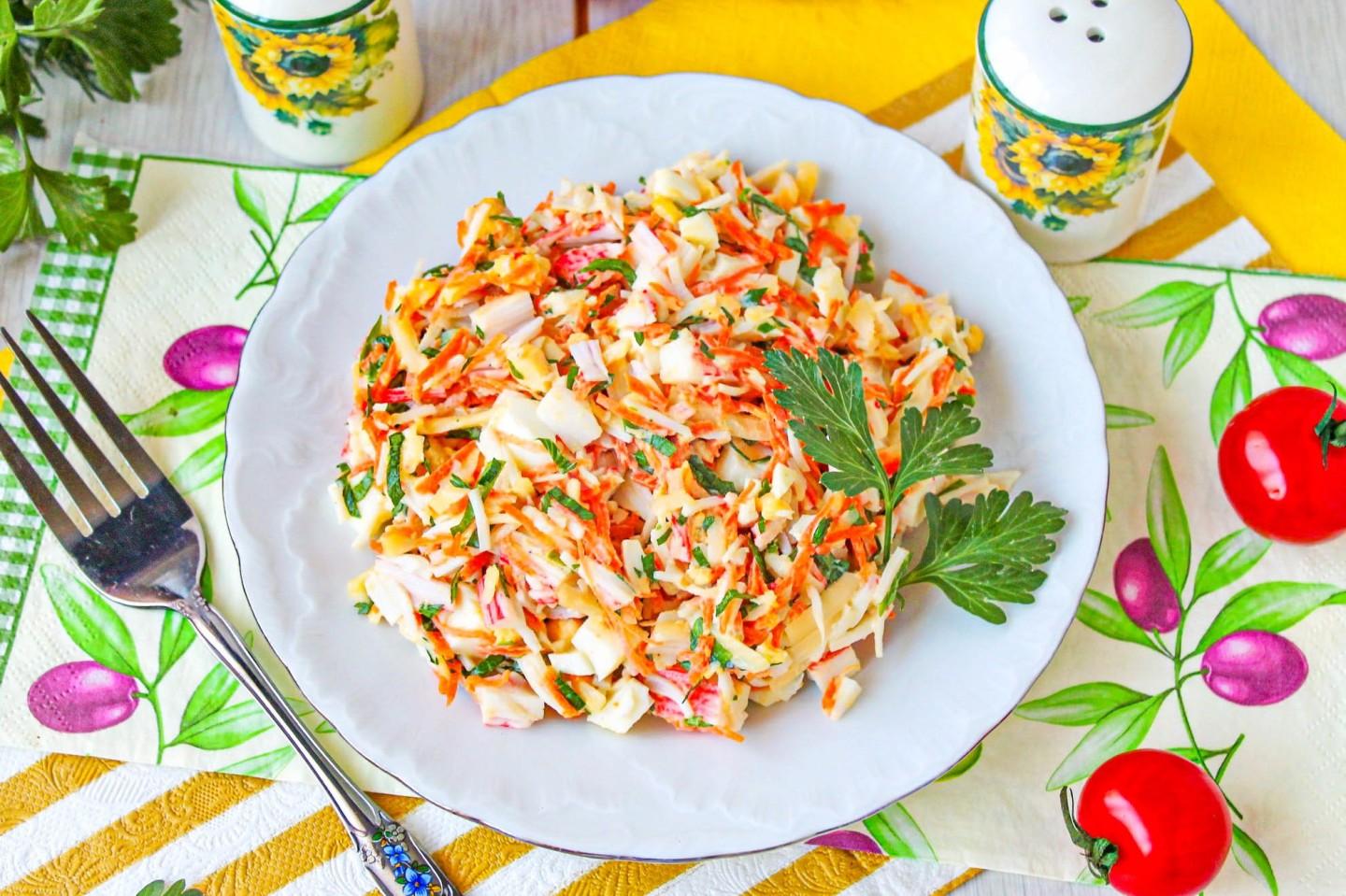 Сочетание крабовых палочек и корейской морковки — классика постсоветской кухни, пример удачного заимствования восточных закусок.
