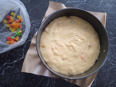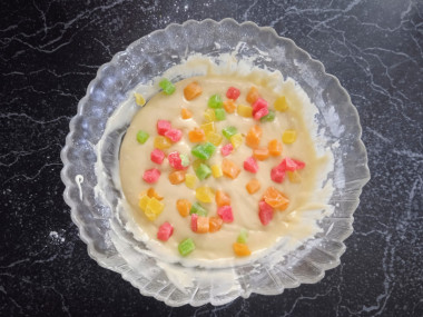 Добавьте цукаты. Аккуратно вымесите, равномерно распределяя цукаты по тесту.