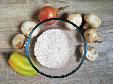 продукты для каши, шампиньоны можно заменить другими грибами.