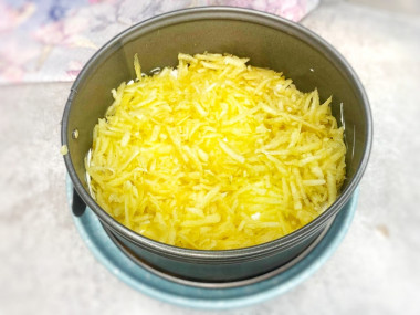 На филе ровным слоем уложите тертое яблоко и также полейте его майонезом.
