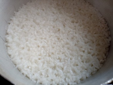 Варим рис до готовности. За это время вода в кастрюле выпарится.
